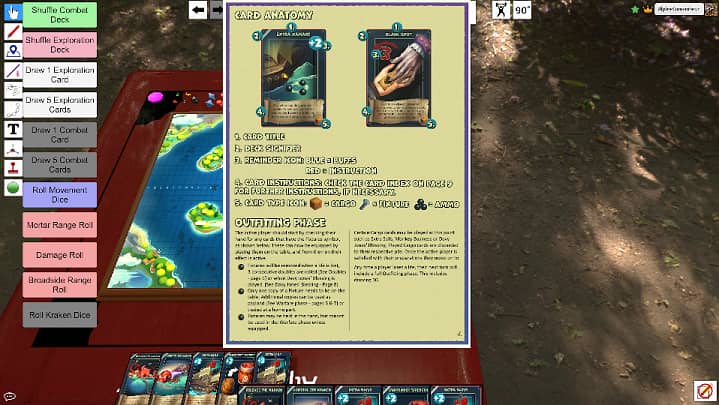 The instruction manuals are both on the table – simply follow the Quick Start rules as you play, and refer to the longer manual if you need to clarify something. There are some buttons you can use for convenience, however the draw card buttons currently deal to all players as turn order hasn’t been implemented in this version.